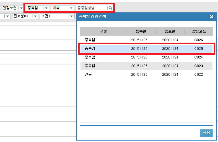 1. 7월 1일부터 기존 산정특례 중증암 환자 중복암 확인 및 관련상병입력 기능이 추가 되었습니다.