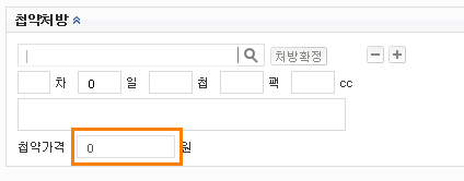 7) 기타 비급여오더 금액 입력창, 첩약가격 입력창, 할인금액 입력창 등 '0' 값이 입력된 곳을 활성화하면 '0' 이 사라지도록 수정하였습니다.