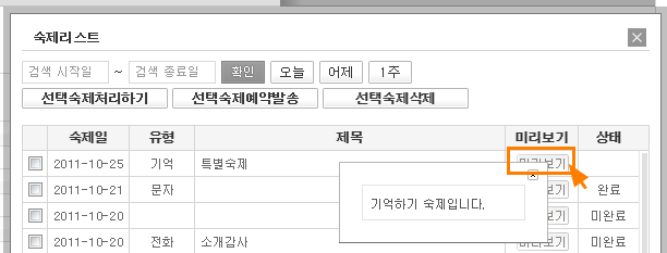 6) CRM내역에서 Call 숙제와 Remind 숙제의 내용도 미리보기 버튼을 클릭하여 볼 수 있도록 수정하였습니다.