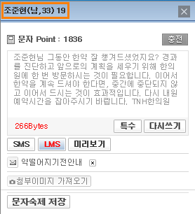 9) 숙제리스트에서 문자 내용을 수정하는 창에 환자정보가 보여지도록 수정하였습니다.