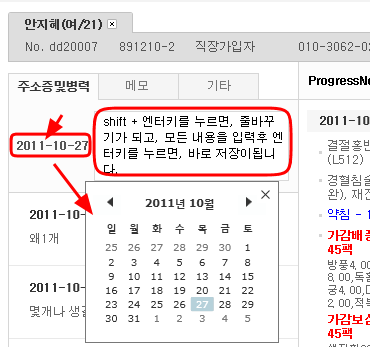 2) 주소증 및 병력, 메모, 기타 입력란에 확인버튼을 없애고 내용을 입력한 후 엔터를 치면 즉시 저장되도록 수정하였습니다.