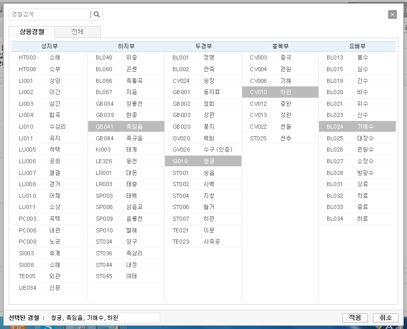 4) 혈자리 선택창에서 혈자리의 코드가 보여지도록 수정하였습니다.