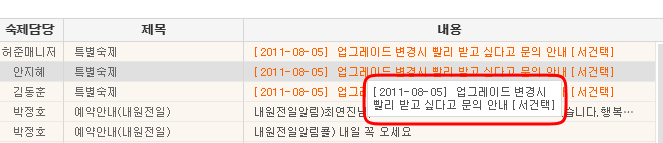 8) 문자발송내역에서 제목 및 내용에 해당하는 내용을 텍스트로 선택하여 복사할 수 있도록 수정하였습니다.