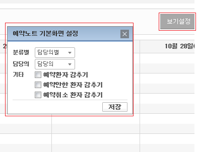 - 분류별 설정으로 예약노트 기본 보기창을 설정 할 수 있습니다.