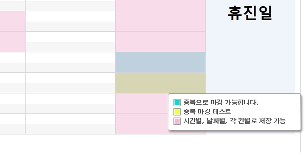 - 시간을 선택하면 해당 가로 영역을 모두 선택 할 수 있습니다.