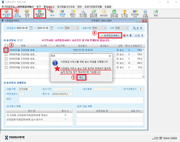 단, 사전점검 서비스는 실제 청구하는 것이 아니기 때문에 사전점검 결과 확인 후 이상이 없다면 실 청구를 꼭 하셔야 합니다.
