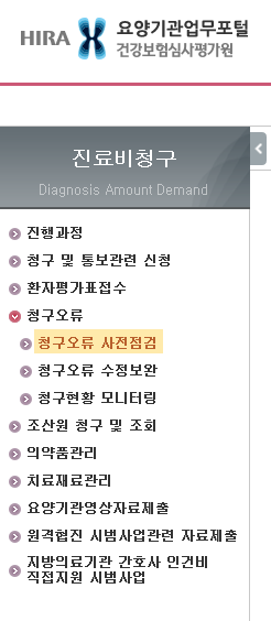 - "청구오류 사전점검서비스"는 청구명세서 전반의 기재오류 등을 자가 점검할 수 있는 서비스입니다.