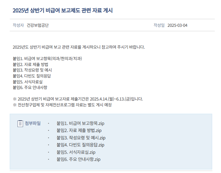 [건강보험공단] 2025년 상반기 비급여 보고제도 관련 자료 게시